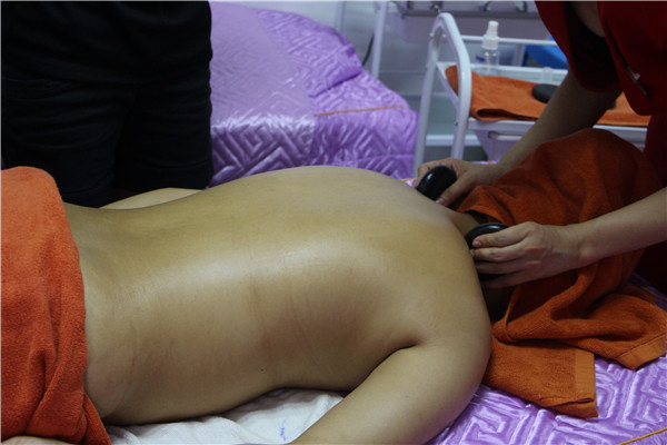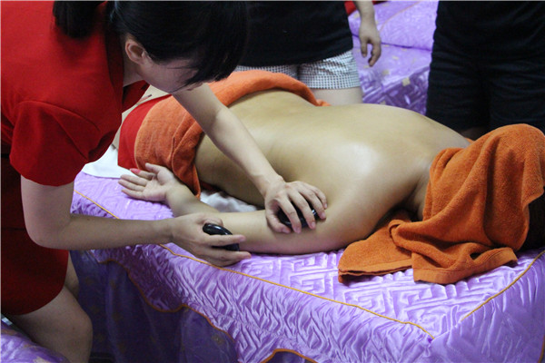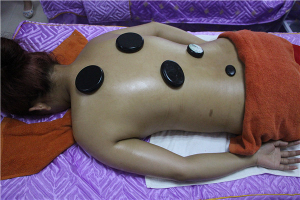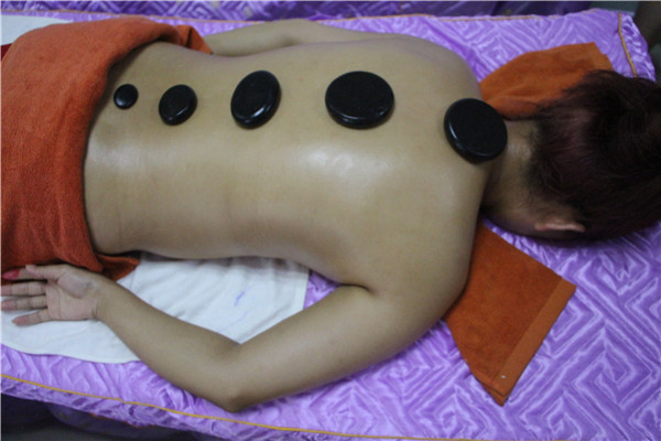 第四步,熱石的按摩。將熱石輕輕的按壓在背部的肌膚上,讓顧客完全的放松下來。然后,將其放在脊椎的兩側穴位上,讓熱石吸收的精油和能量傳入到皮膚制作。背部穴位按壓需要持續二十分鐘即可。